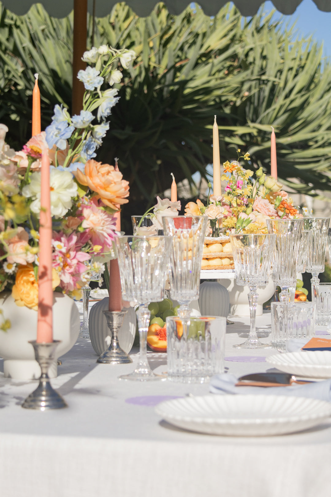 Our taper candles are available in a curated range of colours designed to complement wedding florals and styling palettes.